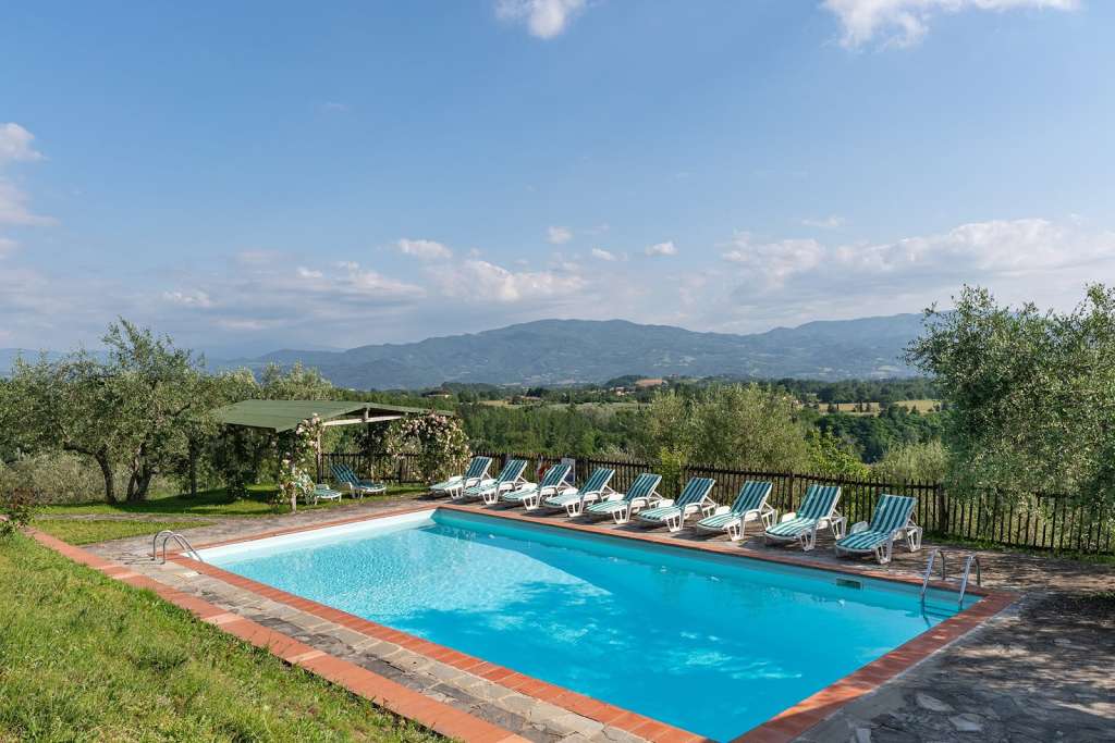 Villa Lorenzo stammt aus dem Jahr 1629 und war ein Bauernhaus mit Ställen bis zum Ende der 1990er Jahre, als es die Eigentümer einer sorgfältigen Renovierung unterzogen, bei der so weit wie möglich die originalen Fußböden aus Terracotta und 'pietra serena' aus Firenzuola, sowie die Deckenbalken und der antike Spülstein erhalten hat. Die Schlafzimmer wurden in antikem Bauernstil vom Ende des 19. und Beginn des 20. Jahrhunderts eingerichtet. Das Innere des Hauses erstreckt sich auf zwei Ebenen. Das Erdgeschoss öffnet sich zu zwei großen, durch Steinbögen getrennten Wohnzimmern mit Sat-TV, Couchgarnitur und zwei Kaminen (einer mit integriertem Holzofen). Daneben befinden sich das Esszimmer, eine große, vollständig ausgestattet Küche und ein Gästebad. Weiterhin im Erdgeschoss, mit Zugang auch von außen, befindet sich ein Zweibettzimmer mit Bad mit Dusche (über eine kleine Treppe zu erreichen). Der erste Stock setzt sich zusammen aus 1 Doppelzimmer mit Himmelbett und Bad mit Wanne, 1 Doppelzimmer mit Bad mit Dusche, 3 Zweibettzimmern und 2 Doppelzimmern, die sich 3 Bäder mit Dusche am Ende eines Korridors teilen.
